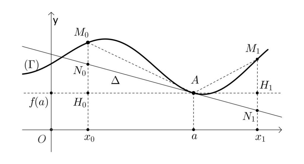On se place au voisinage d’un point {A(a,f(a))} de la courbe représentative {(\Gamma)} de {f}.