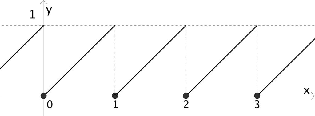 On a représenté ci-dessous la fonction {f:x\mapsto x-\lfloor{x}\rfloor}.